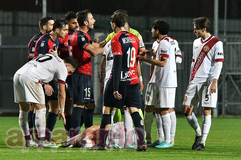 giocatori al buio in Gubbio-Arezzo del 2024