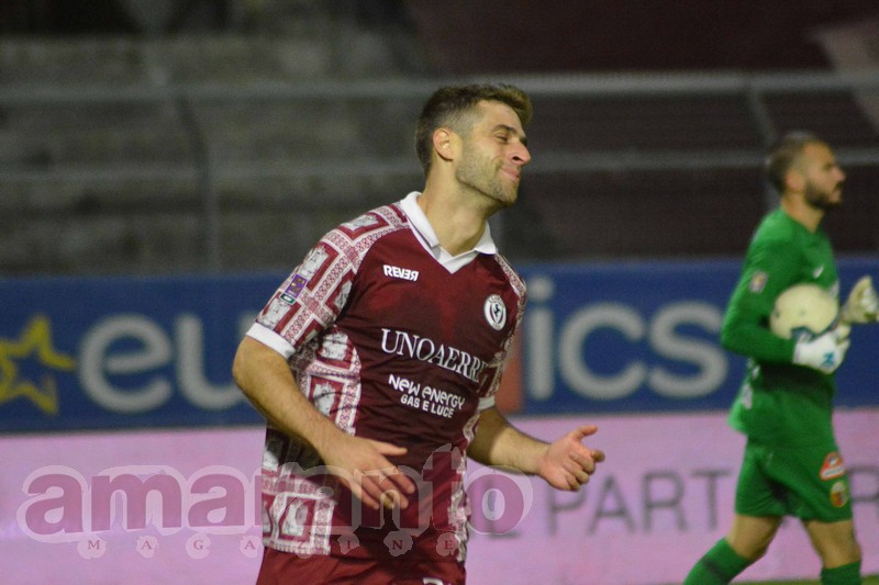 l'esultanza di Corazza dopo il gol al Comunale