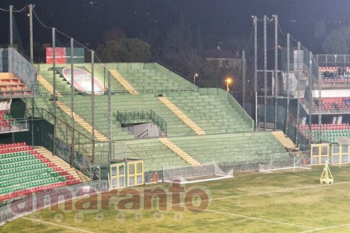 Oggi intanto il giudice sportivo ha inflitto un’ammenda di 500 euro alla società amaranto “per fatti contrari alle norme in materia di ordine e di sicurezza e per fatti violenti commessi dai suoi sostenitori, consistiti nell’aver lanciato, prima dell’inizio della gara di Ravenna, mentre le squadre erano schierate in campo per i saluti, un fumogeno sul terreno di gioco, senza conseguenze”.