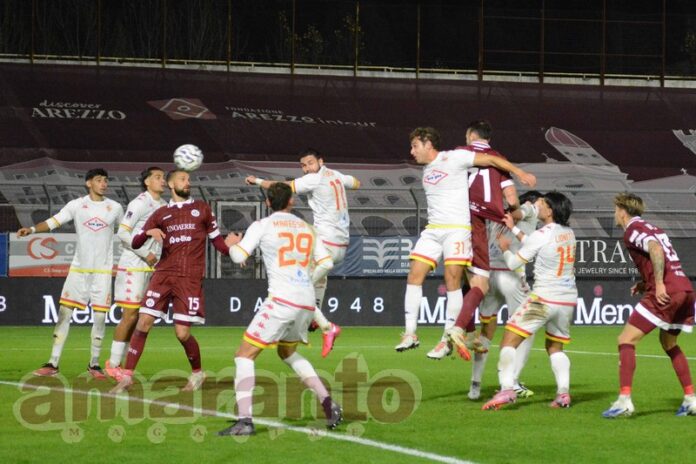 lo stacco aereo di Cianci per il 2-0 amaranto