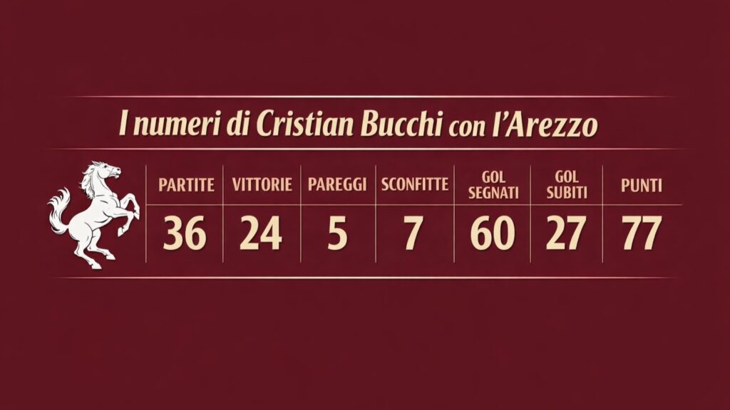 UN ANNO FA – Pochi ricordano che il nome di Cristian Bucchi era stato già accostato all’Arezzo nel 2020, dopo la cessione della società da La Cava a Manzo. Il ds Di Bari però scelse Potenza, mentre qualche mese più tardi arrivò Camplone e poi Stellone e poi finì con la dolorosa retrocessione in serie D. Altri tempi, altri equilibri interni, altre dinamiche. Il matrimonio tra Bucchi e i colori amaranto però fu solo rinviato e proprio un anno fa, il 4 febbraio 2025, il club ne annunciò l’ingaggio, chiudendo i due giorni di colloqui e sondaggi con vari tecnici che potevano fare al caso dell’Arezzo e annunciando il successore dell’esonerato Emanuele Troise, il quale, per inciso, sta facendo un bel lavoro con il Lumezzane.