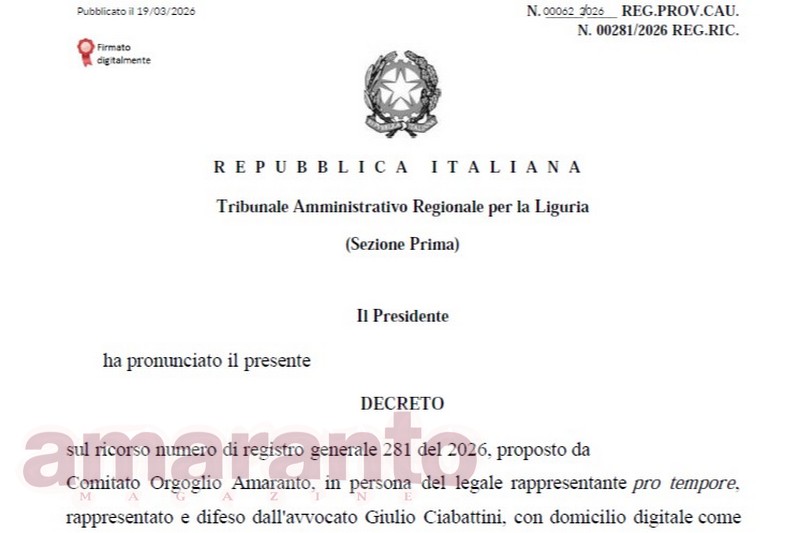 Il tribunale amministrativo della Liguria ha respinto il ricorso presentato da Orgoglio Amaranto contro il divieto di trasferta imposto dalle autorità di pubblica sicurezza ai tifosi aretini per la partita di domani sera a Sestri Levante contro il Bra. Il comitato, tramite il legale Giulio Ciabattini, aveva chiesto la sospensiva del decreto prefettizio con cui è stata interdetta la vendita dei biglietti per la partita ai residenti in provincia di Arezzo.