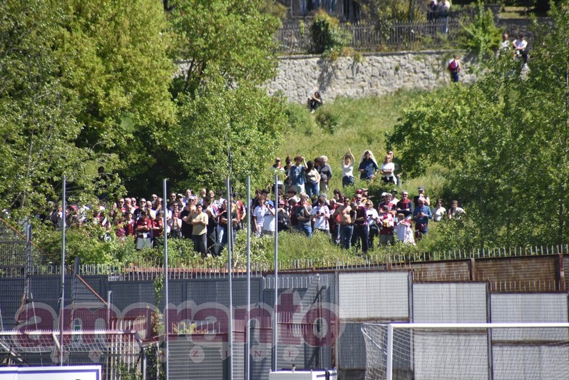 1 – Comunale stracolmo in una giornata molto calda, bandiere amaranto ovunque. Terreno di gioco in perfette condizioni